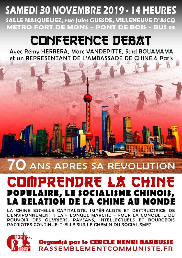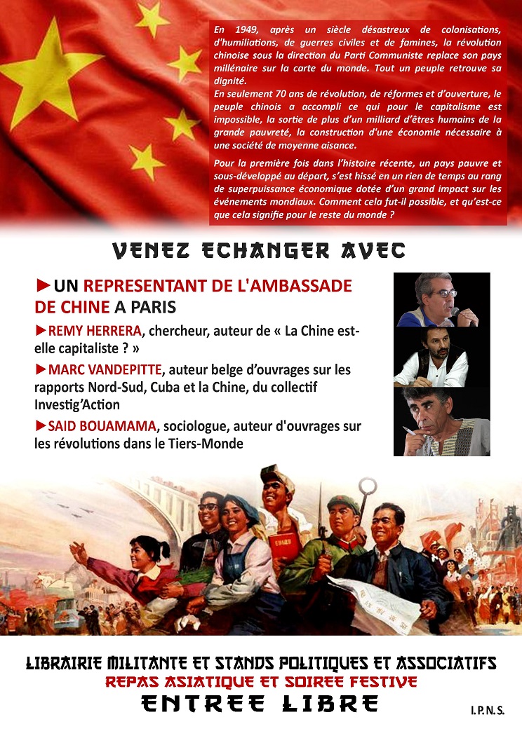 Avec Rémy Herrera, Marc Vandepitte, Saïd Bouamama et un représentant de l’ambassade de Chine à Paris